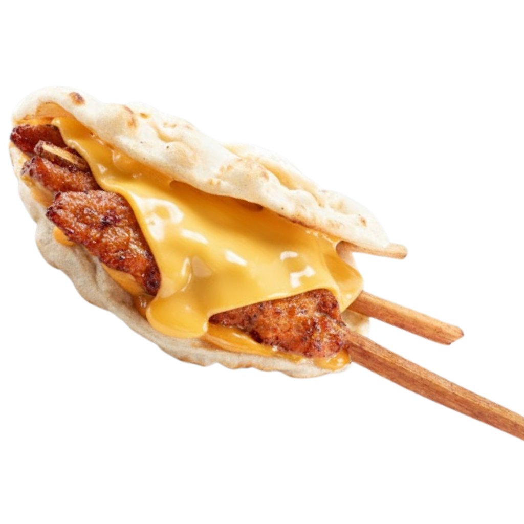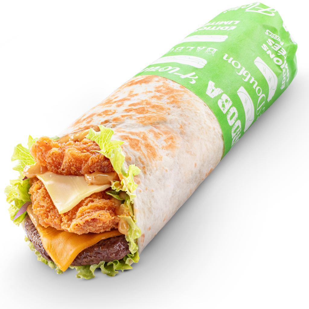 Le wrap cheesy cheesy, pensé pour les amoureux du fromage. Double emmental fondu, sauces fromagères et une pointe d'ail, oignons frits croustillants, steak 80g savoureux et Crusty Panka'S fumé iconique Burger’s.